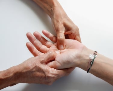 Dans le cas où les pieds ne sont pas accessibles ou manipulables (fractures, pieds souffrants, ...), je peux passer par le massage des mains afin de stimuler les systèmes du corps.