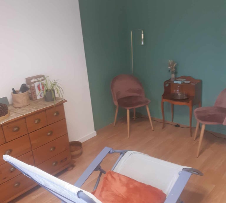 Vous serez installé-e confortablement dans le fauteuil afin de recevoir le soin de réflexologie et profiter d'un instant de détente dédié à votre bien-être.Retour et partage :